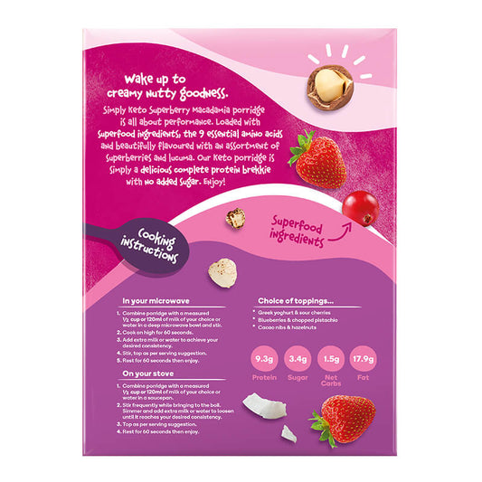 Gachas de macadamia y frutos rojos cetogénicos 240 g