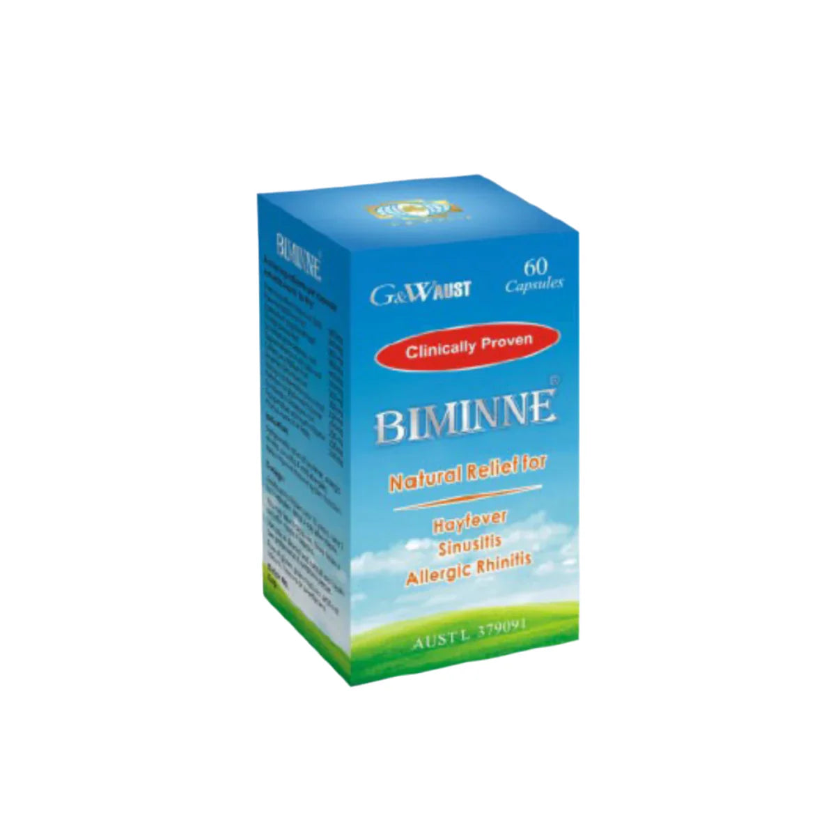 Biminne capsule is a natural herbal medication for symptomatic relief of allergic rhinitis. It has been identified to be effective in two clinical trials in Australia.