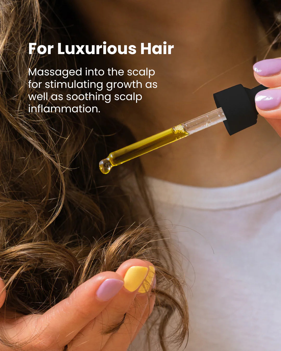 For Hair & Skin: Apply a few drops directly to the scalp or skin, massaging gently.