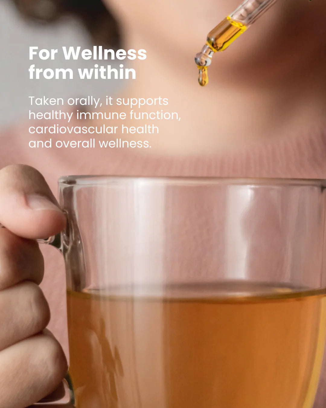 Internal Wellness: Supports immune health, cardiovascular function, and joint mobility when taken orally.